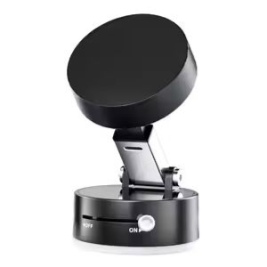 The dual magnetic surfaces enable mounting two devices simultaneously or provide flexibility in positioning. The adjustable mechanism allows users to find their optimal viewing angle for activities like video calls, watching content, or general phone use. The base provides stable support while maintaining a minimal footprint on any flat surface.