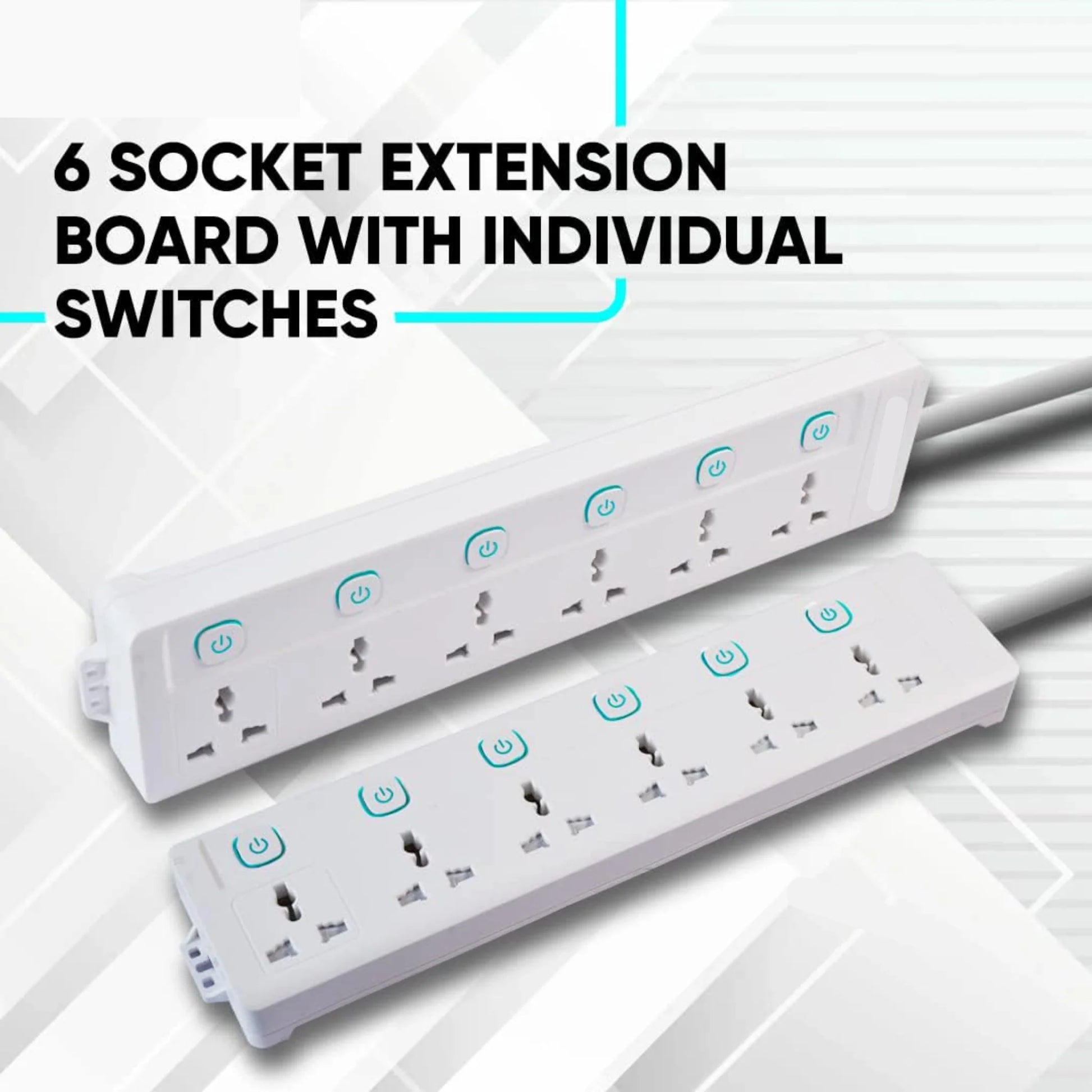 LightX Extension with Switch 6 Socket & 5m With Individual Switch 3250W