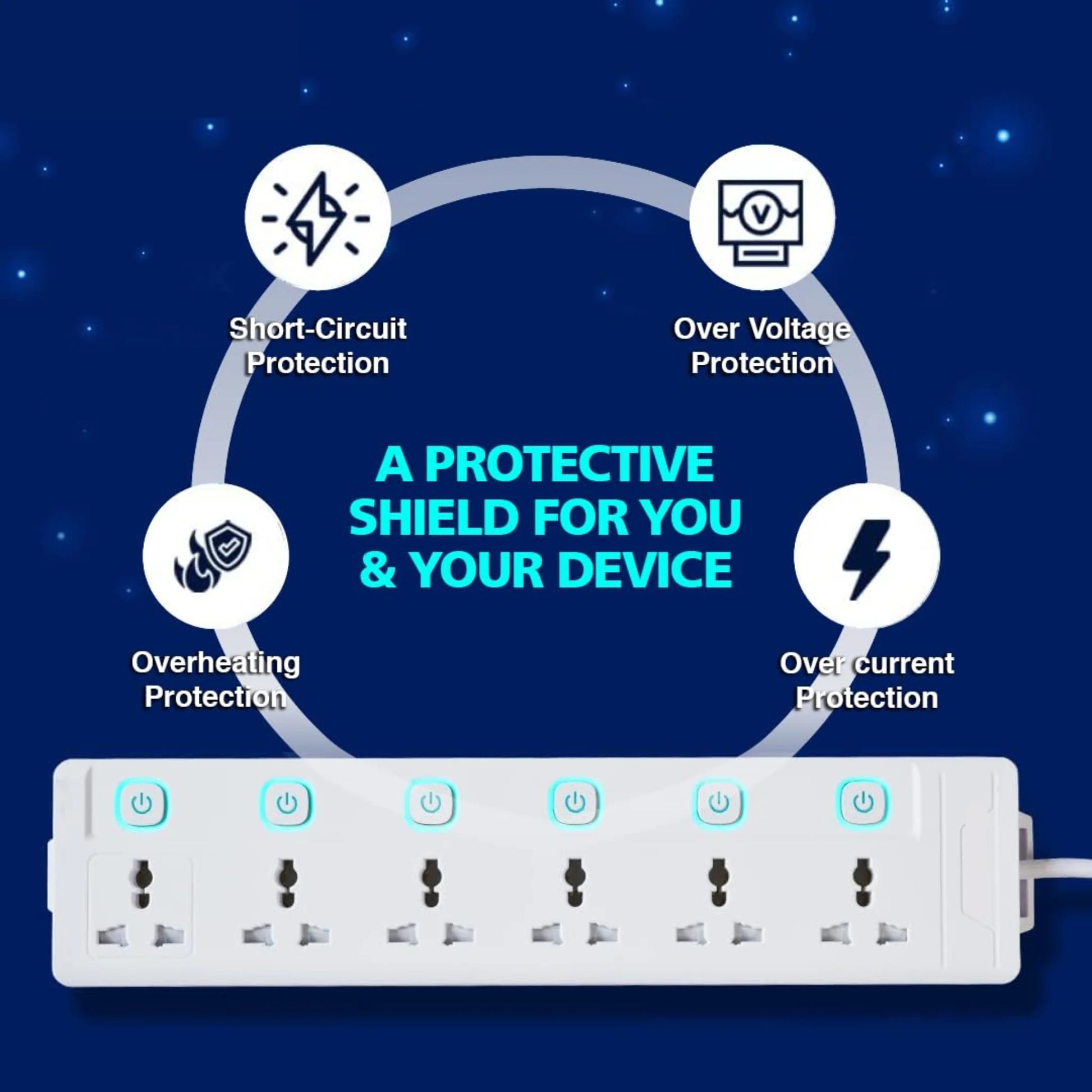 🔌 6 Universal Multi-Sockets: Compatible with all major plug types for flexible use.