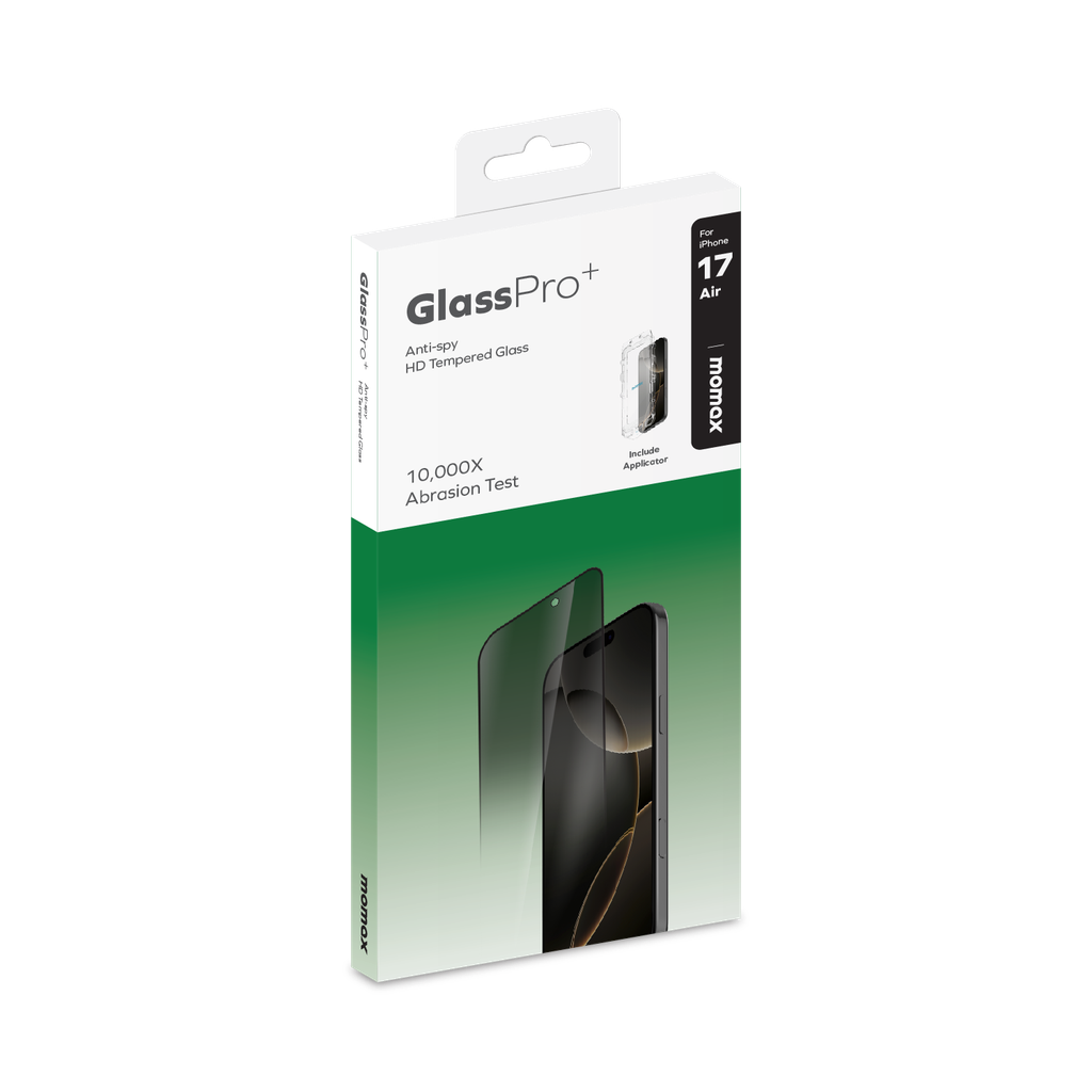 Keep your iPhone 17 Air (6.6") safe and private with the Momax Fully Covered HD Privacy Glass. This premium tempered glass screen protector provides full edge-to-edge coverage while shielding your screen from scratches, drops, and smudges. The HD privacy filter ensures your screen content remains visible only to you, preventing others from viewing your personal information.