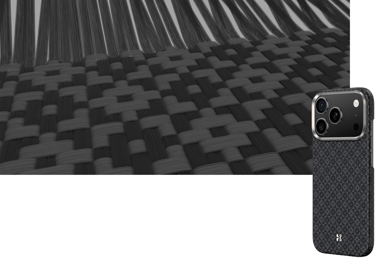 Guided by geometric form and inspired by nature’s essence, the ArmorGrid ArmorAir Case is woven from DuPont™ Kevlar® fiber with the refined Jiaoluo traditional weaving technique, creating a texture that balances resilience and artistry.