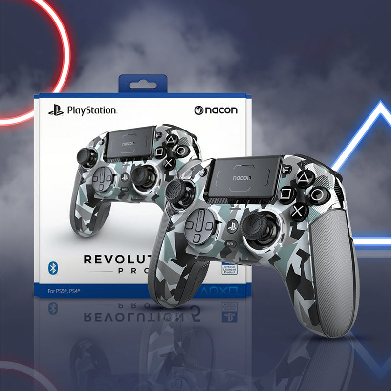 Elevate your gaming with the Nacon Revolution 5 Pro Wireless Controller – Arctic Camo, designed for precision, comfort, and performance. It features customizable thumbsticks, adjustable triggers, and programmable buttons for full control. The ergonomic build ensures comfort during long sessions, while ultra-responsive wireless connectivity delivers minimal latency. Compatible with PC and PlayStation, it includes vibration feedback and onboard profiles for immersive gameplay. Finished in a sleek Arctic Camo design, it combines durability, style, and pro-level performance in one controller.